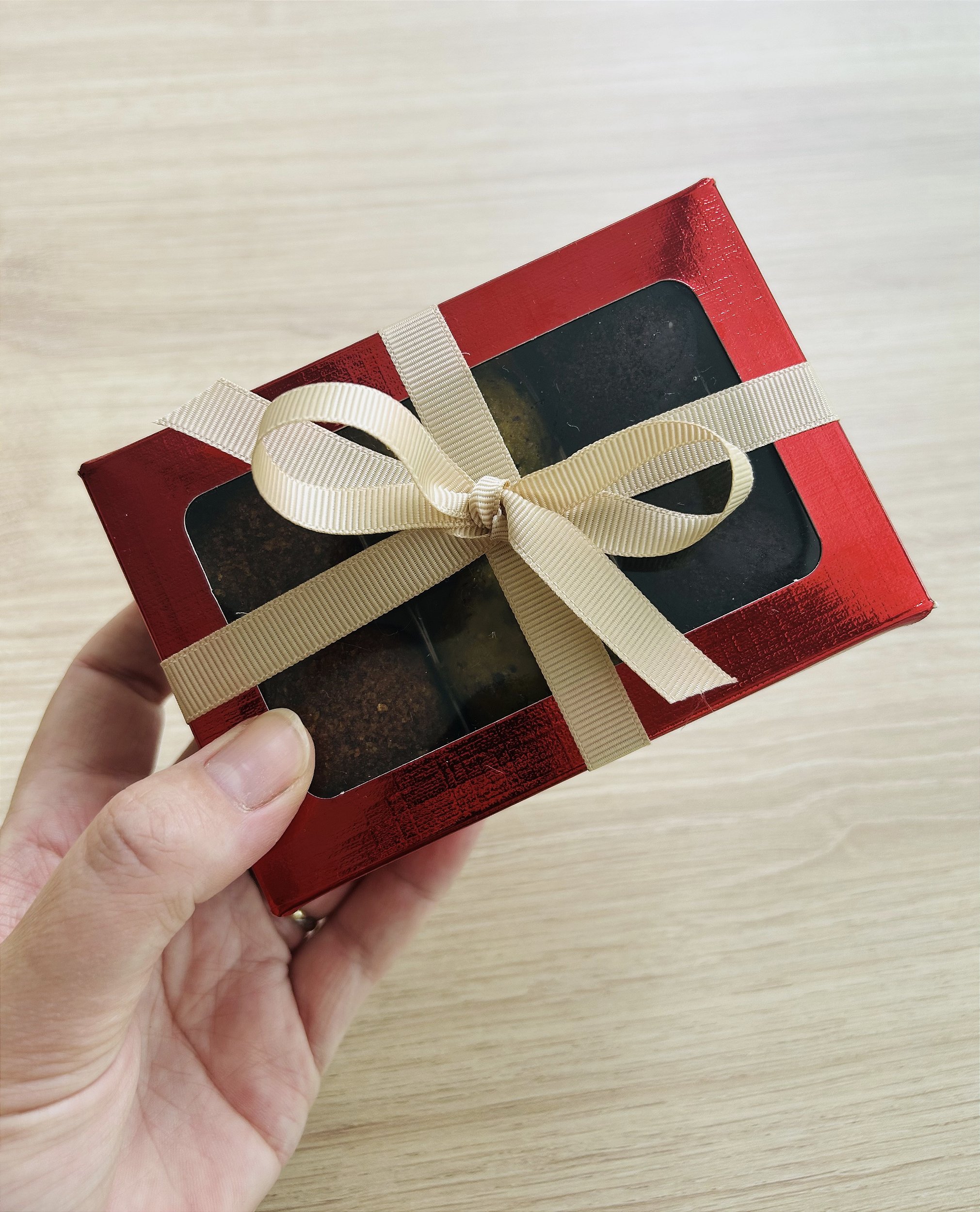 Na caixa vem: 2 brigadeiros belga, 2 brigadeiros de pistache e 2 brigadeiros de churros. Todos os produtos desta embalagem são zero açúcar, lactose e glúten.